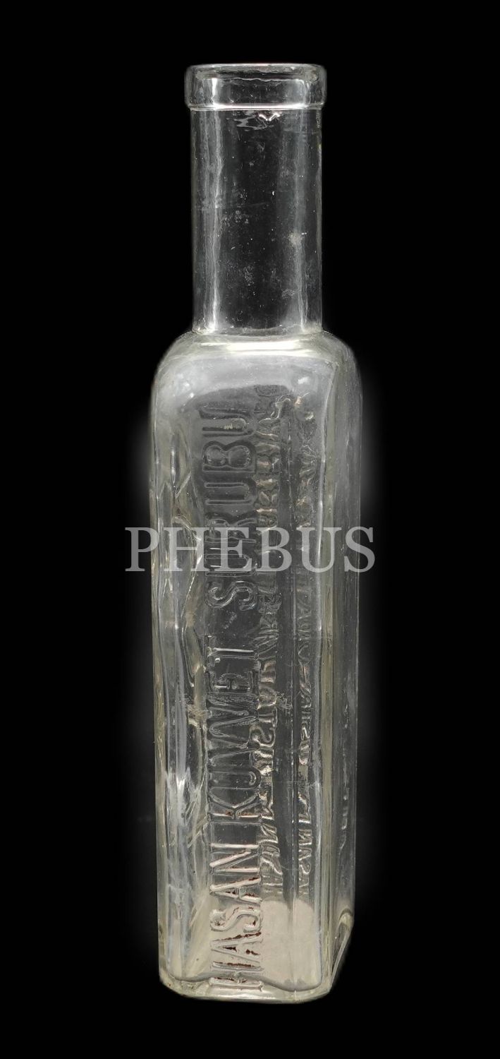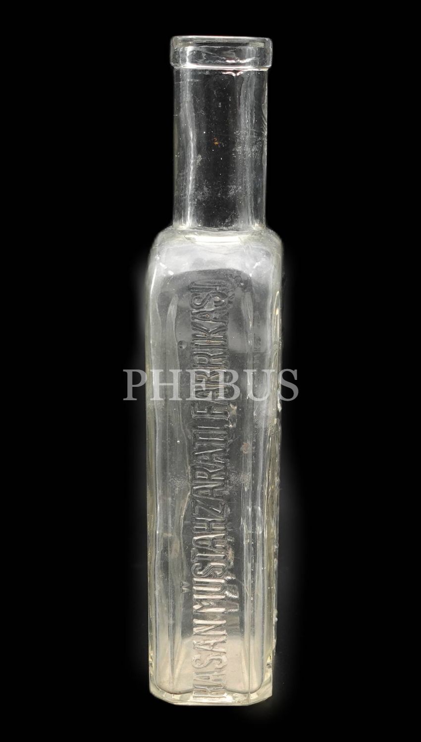 Kabartma HASAN KUVVET ŞURUBU / HASAN MÜSTAHZARATI FABRİKASI yazılı boş şişe, 17x5x3 cm...