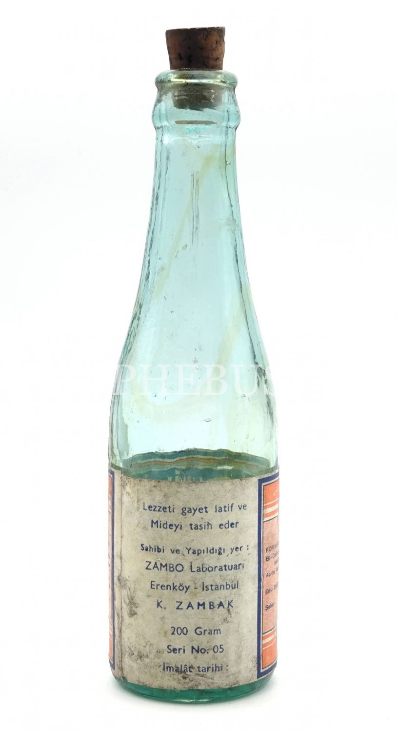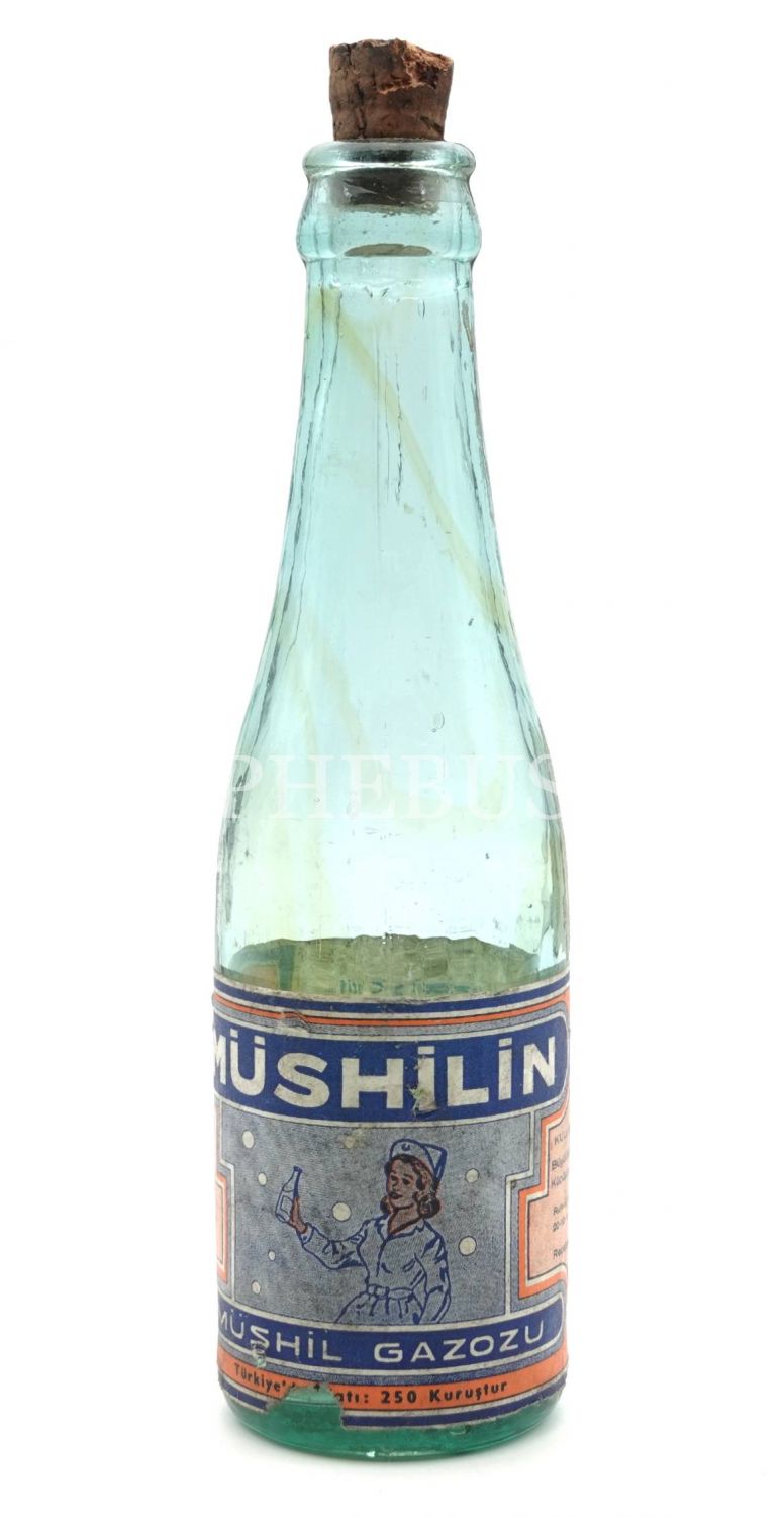 MÜSHİLİN MÜSHİL GAZOZU şişesi (boş), sahibi ve yapıldığı: Zambo Laboratuarı (K. Zambak) - Erenköy / İstanbul, 21x5 cm...