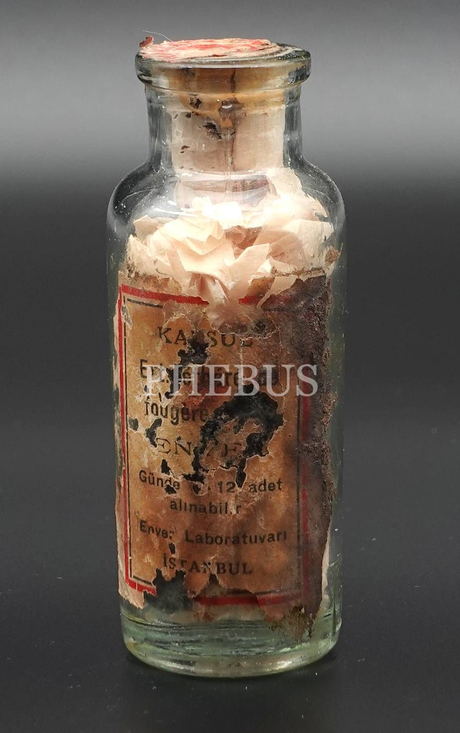 Enver Laboratuvarı (İstanbul) mamulatı dolu Kapsül Fujerman şişesi, 9x3 cm...