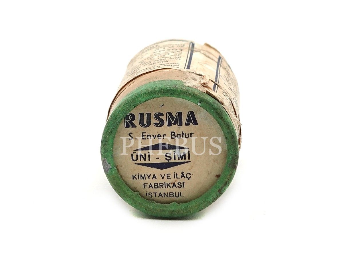 Karton RUSMA (S. Enver Batur) pudra kutusu (boş), Üni-Şimi Kimya ve İlâç Fabrikası (İstanbul), 10x4 cm...