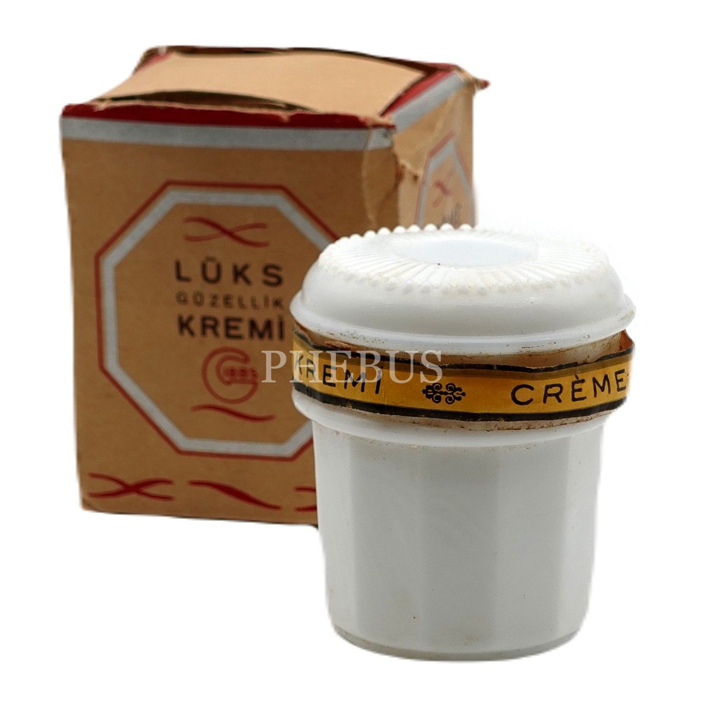 Prospektüsün de yer aldığı orijinal kutusunda dolu LÜKS GÜZELLİK KREMİ kavanozu, Gibbs, 6x6x6 cm...