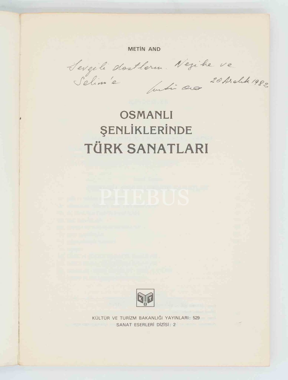 Türk gösteri sanatları üzerine birbirinden değerli pek çok eser vermiş Metin And´ın bol görselli ve 145 adet renkli resim eki ile birlikte... İthaf, "Sevgili dostlarım Nezihe ve Selim´e. 20 Aralık 1982" şeklindedir.