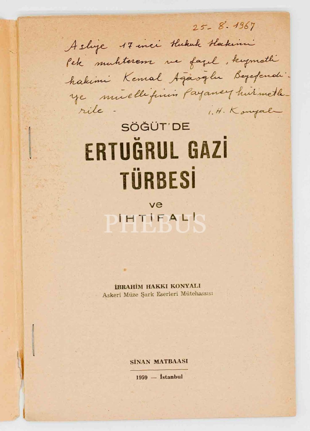 SÖĞÜT´DE ERTUĞRUL GAZİ TÜRBESİ VE İHTİFALİ, İbrahim Hakkı Konyalı, 1959, İstanbul Sinan Matbaası, 63 sayfa, 17x25 cm...