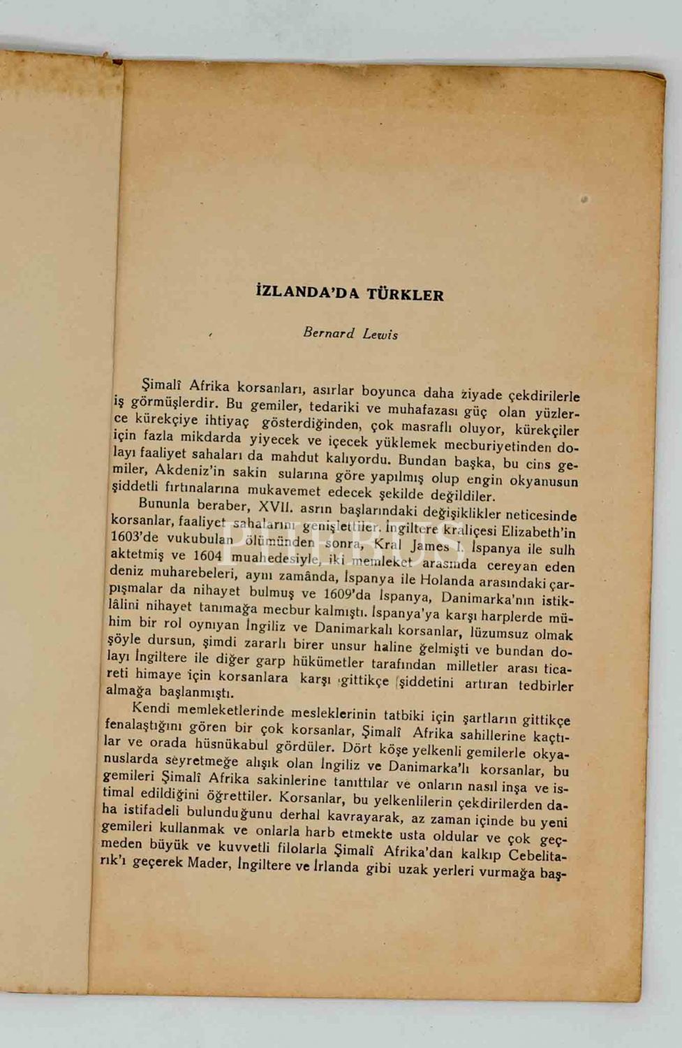 İZLANDA´DA TÜRKLER, Bernard Lewis, çeviren: H. D. Andreasyan, 1953, İstanbul Osman Yalçın Matbaası, 8 sayfa, 17x25 cm...