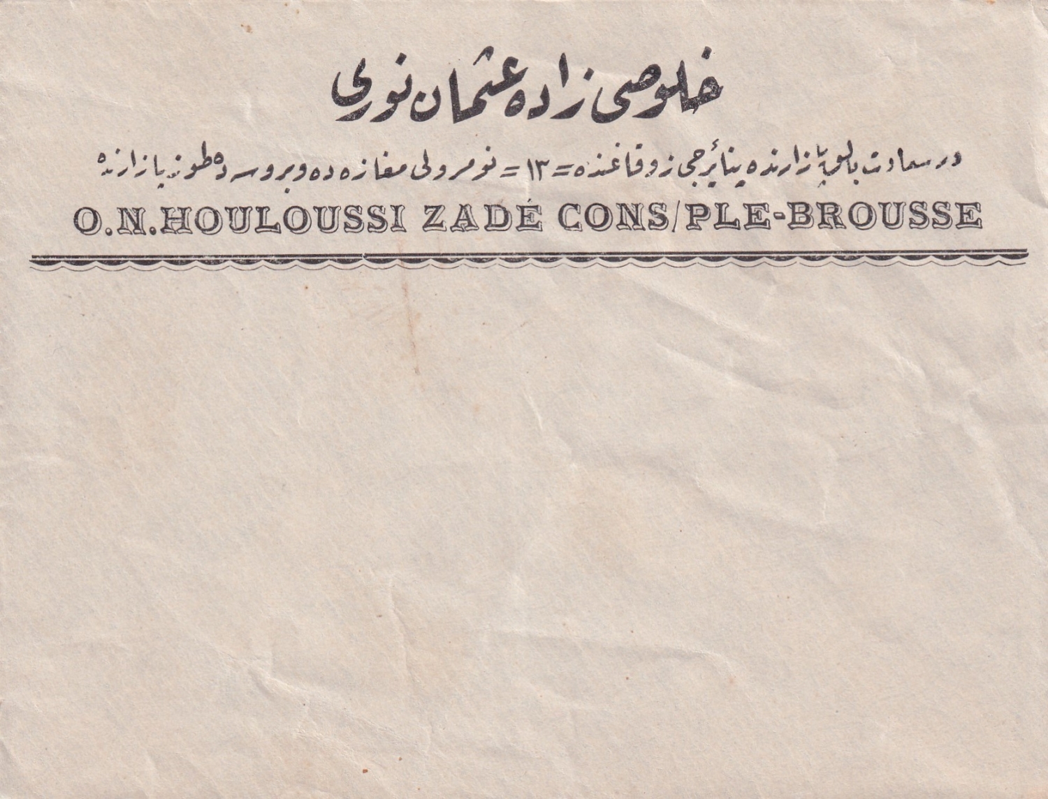 Osmanlıca - Fransızca Hulusizade Osman Nuri, Dersaadet antetli zarf