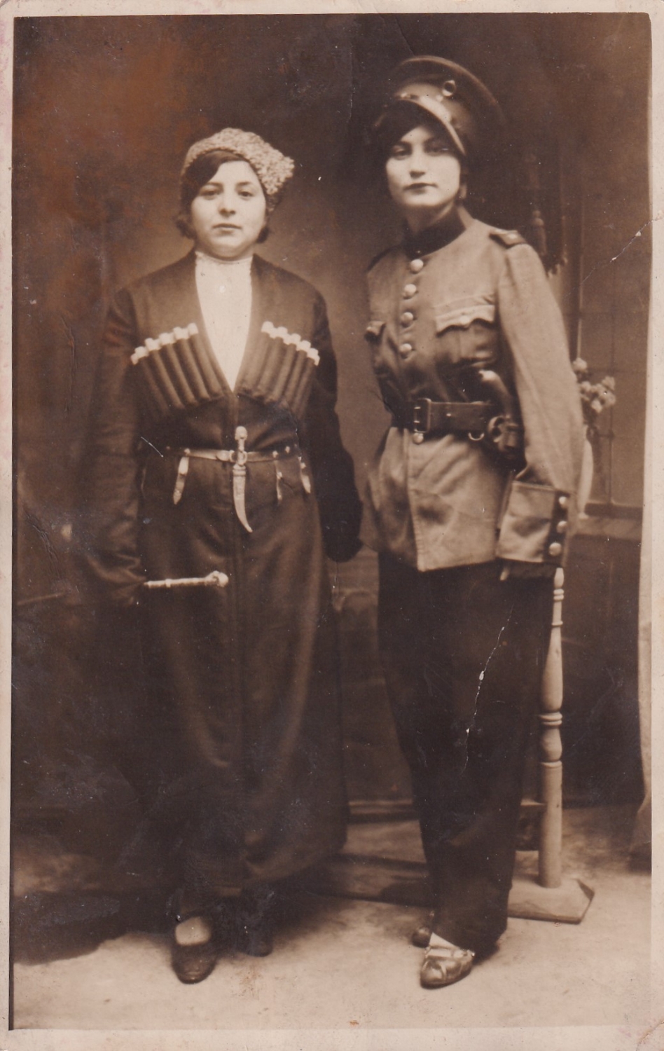 Kafkas kıyafetli, kamalı, kamçılı kadın