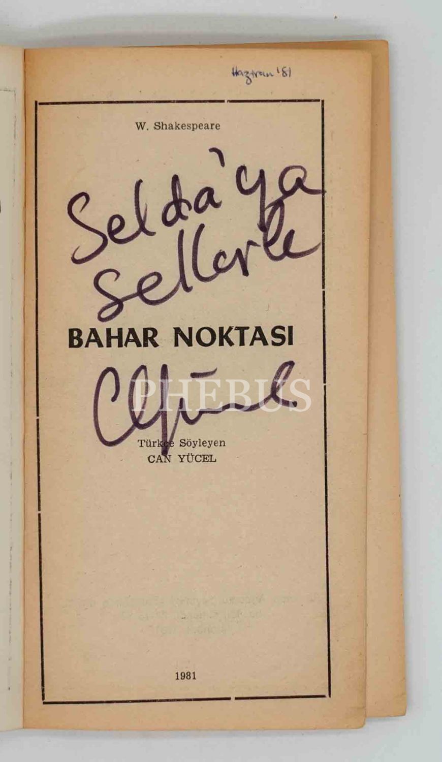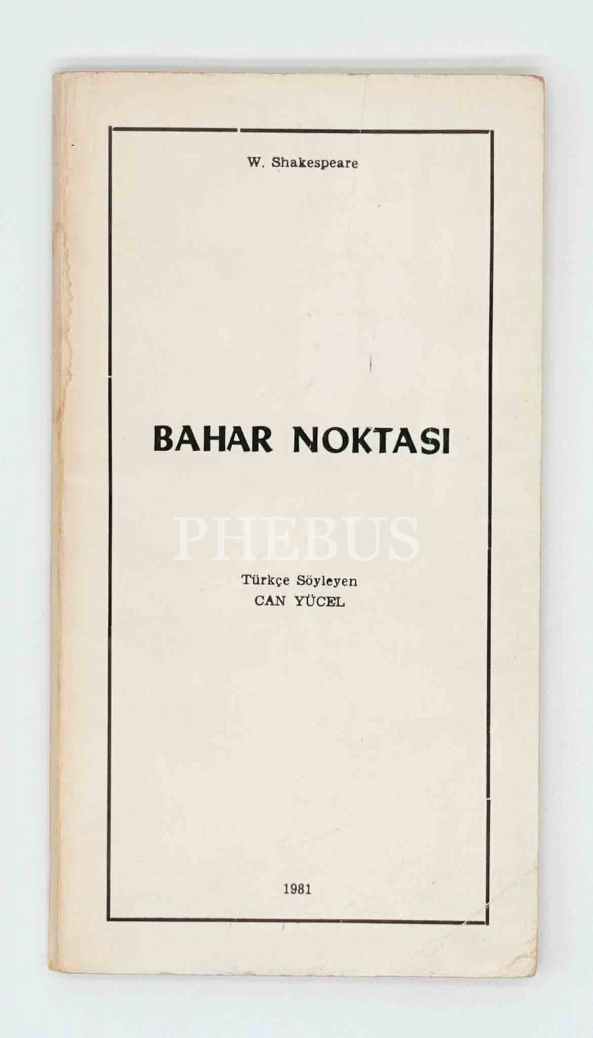 BAHAR NOKTASI, W. Shakespeare, çeviren: Can Yücel, 1981, Ağaoğlu Yayınevi, 79 sayfa, 11x20 cm...