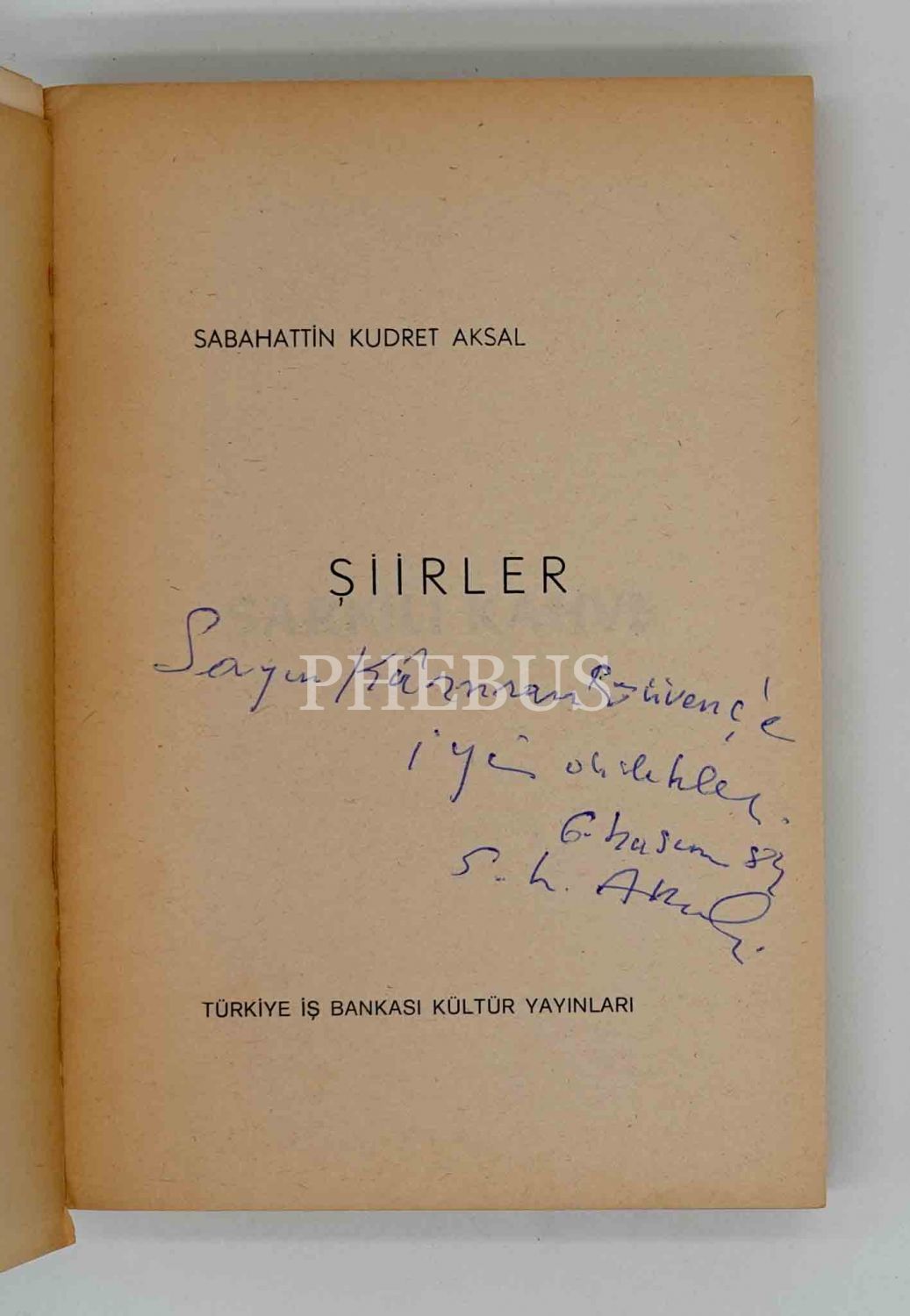 İthaf, "Sayın Kâmuran Güvenç´e iyi dilekler. S. K. Aksal, 84" şeklindedir.