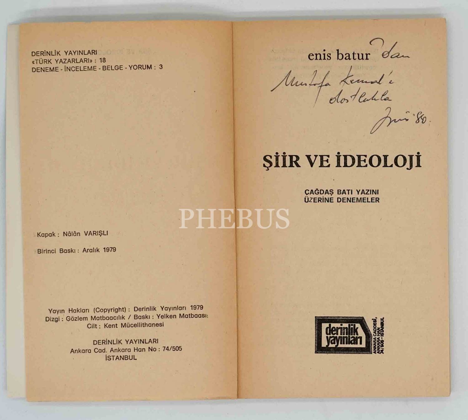 ŞİİR VE İDEOLOJİ, Enis batur, Aralık 1979 (İlk baskı), Derinlik Yayınları, 139 sayfa, 12x20 cm...