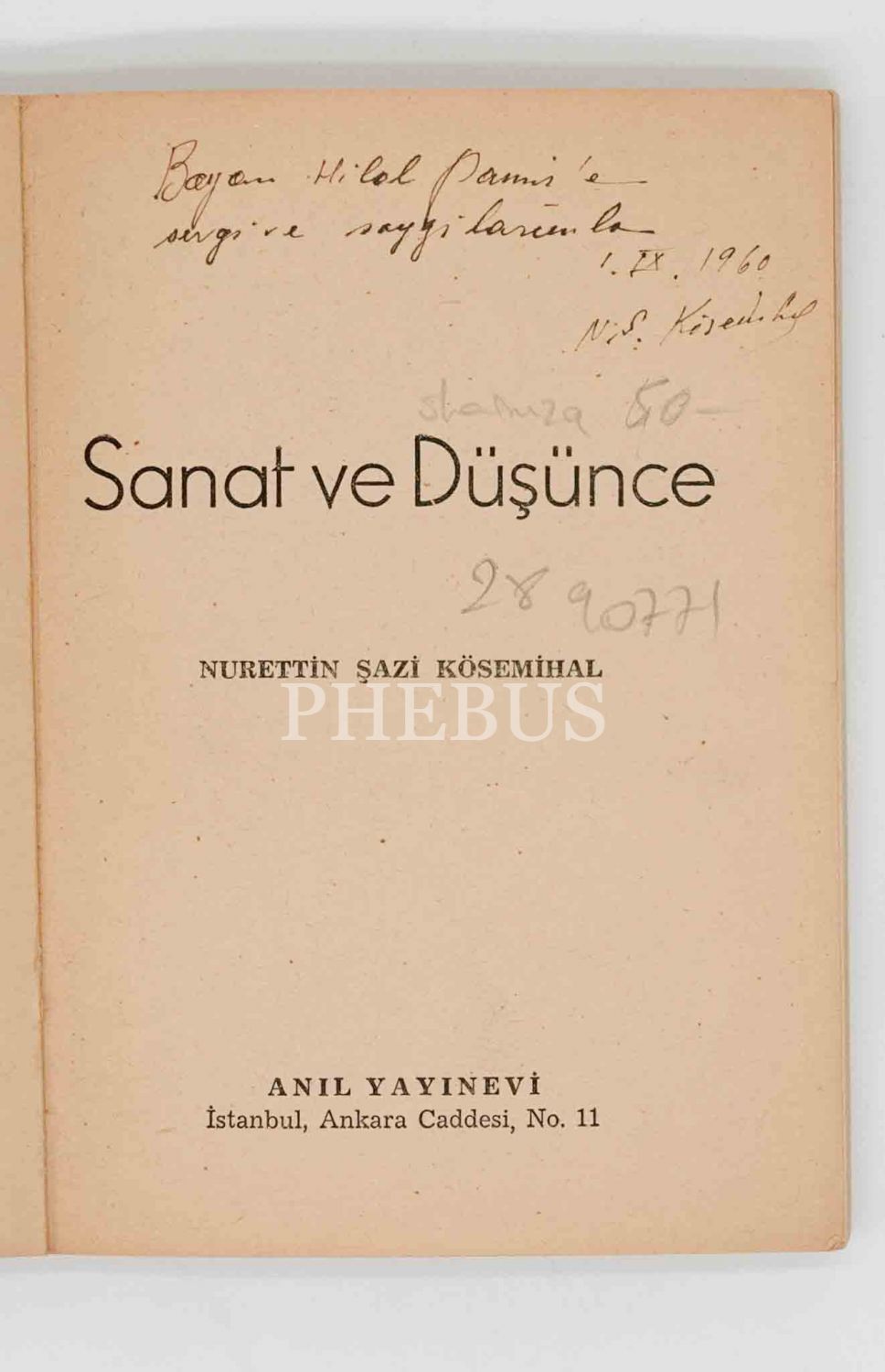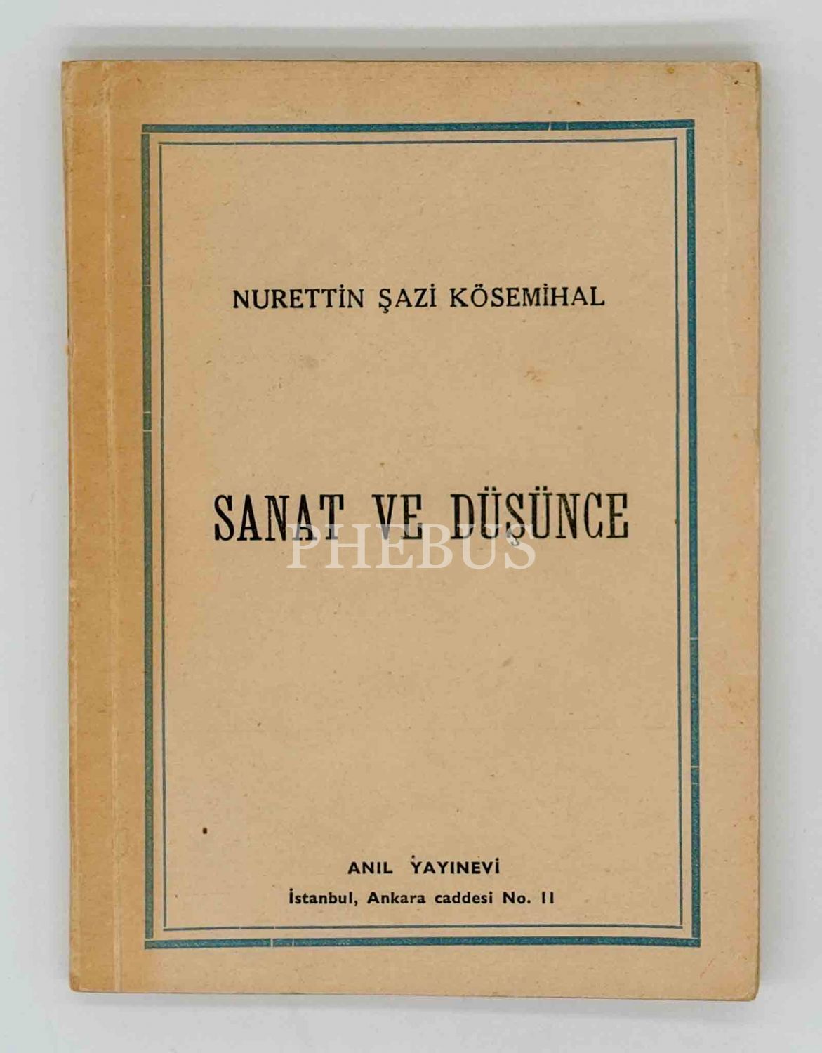 SANAT VE DÜŞÜNCE, Nurettin Şazi Kösemihal, 1957, Anıl Yayınevi, 144 sayfa, 12x17 cm...