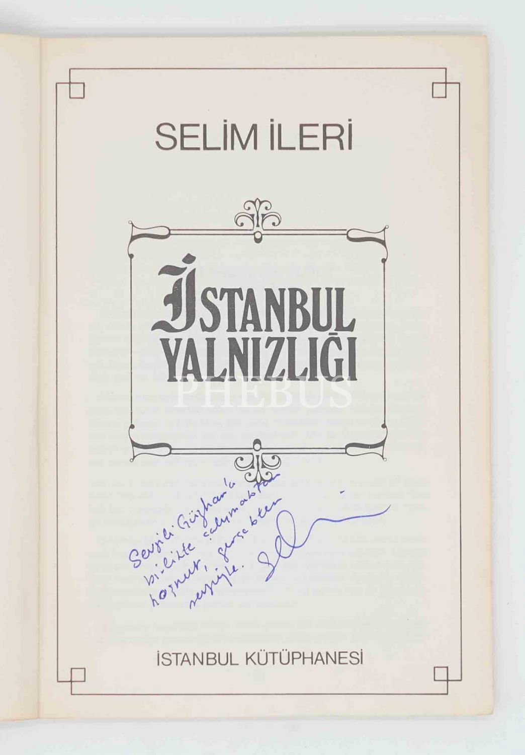 Selim İleri´nin çocukluk ve gençlik yıllarının İstanbul´unu tarihten sayfalarla harmanladığı kitabı... İthaf, "Sevgili Güzhan´a birlikte çalışmaktan hoşnut, gerçekten sevgiyle. Selim" şeklindedir.