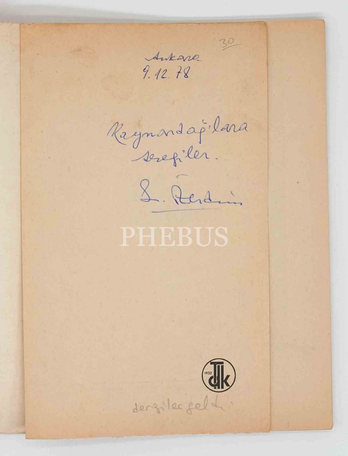 İthaf, "Ankara 9.12.78 Kaynardağ´lara sevgiler. S. Özerdim" şeklindedir.