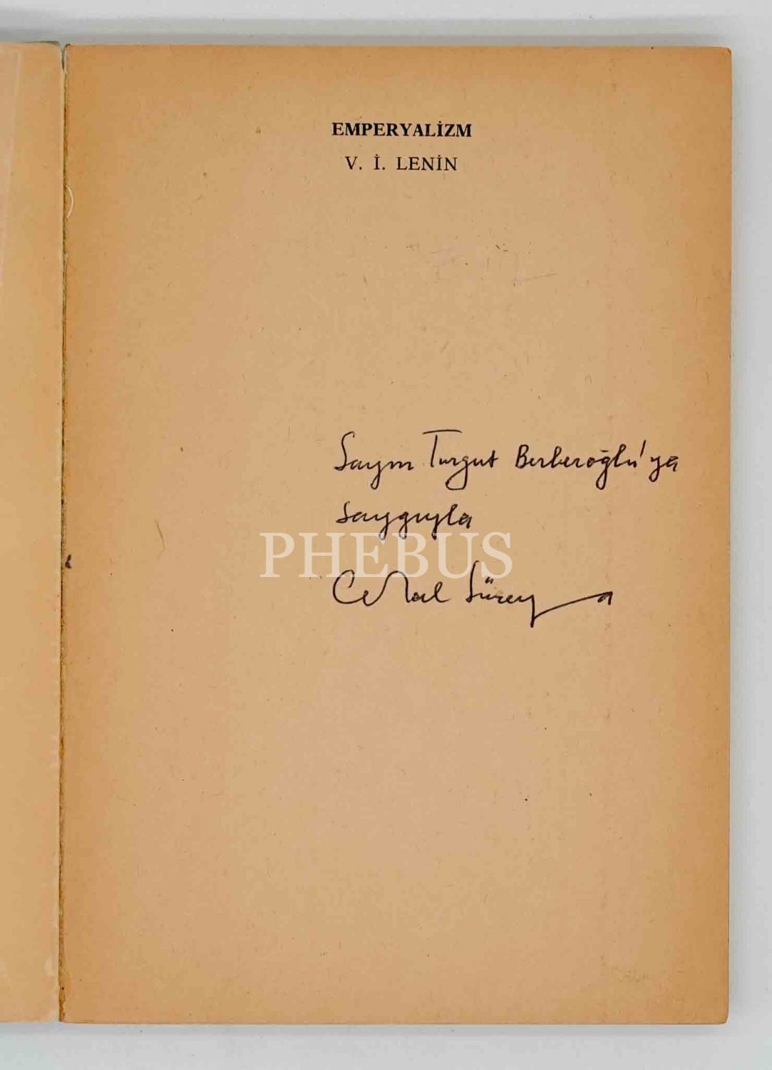 Lenin'in Marksizm'e en büyük teorik katkısı "EMPERYALİZM"in Cemal Süreya çevirisi... İthaf, "Sayın Turgut Berberoğlu´ya saygıyla. Cemal Süreya" şeklindedir.