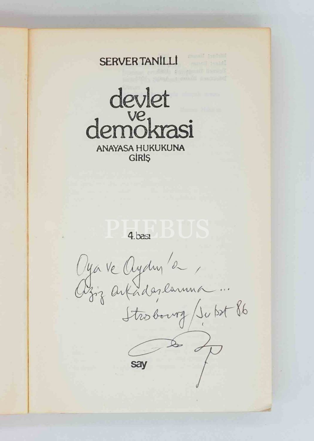 DEVLET VE DEMOKRASİ (Anayasa Hukukuna Giriş), Server Tanill, Aralık 1985 (Dördüncü baskı), 674 sayfa, 14x22 cm...