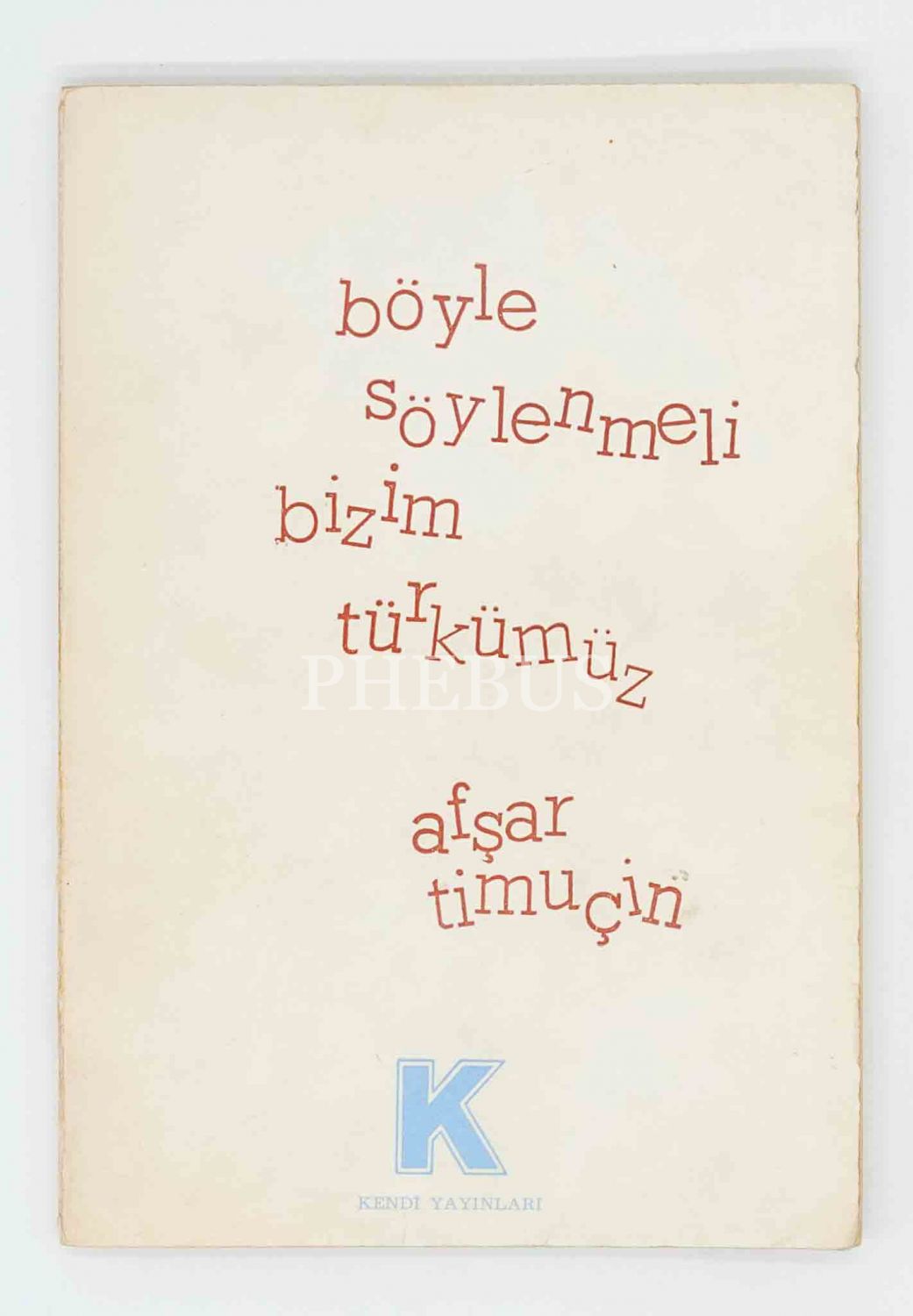 BÖYLE SÖYLENMELİ BİZİM TÜRKÜMÜZ, Afşar Timuçin, Kendi Yayını, 1974, 108 sayfa, 13x19 cm...