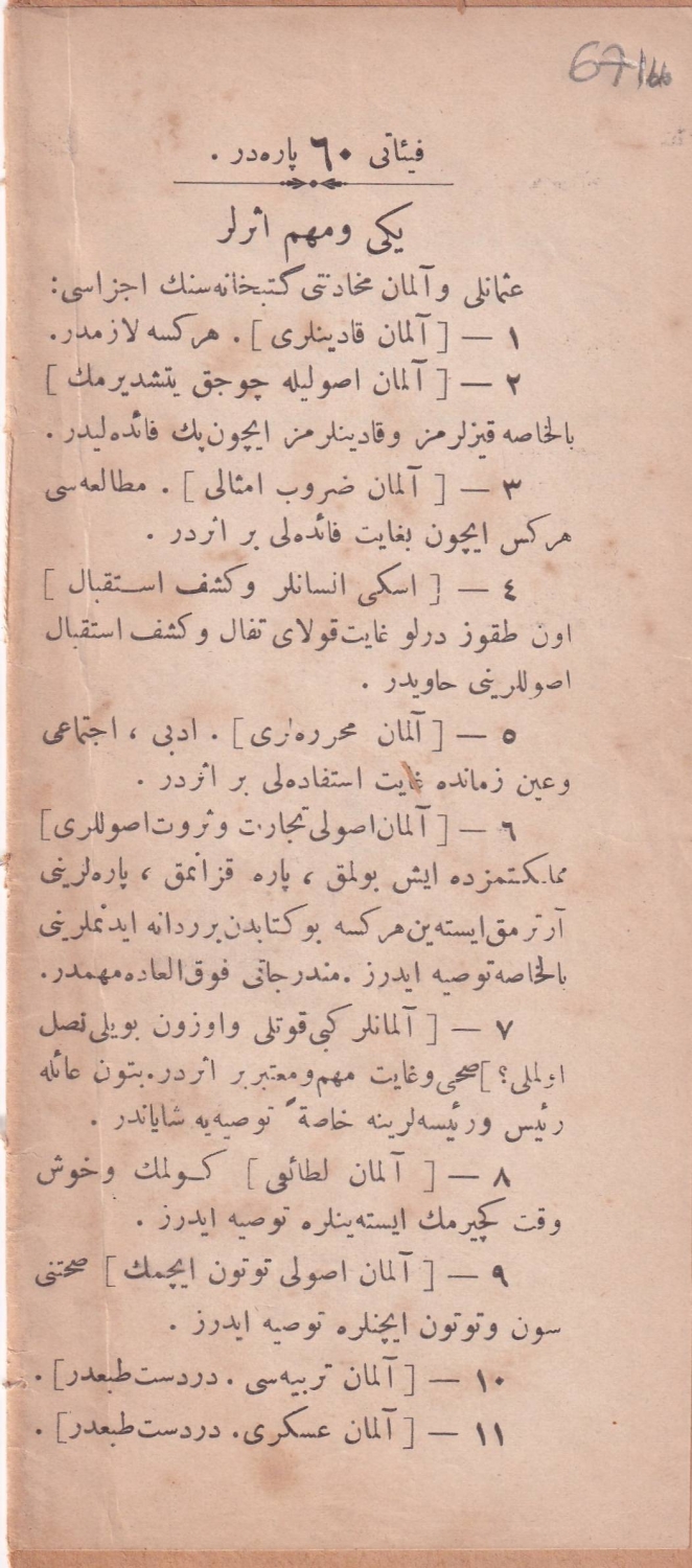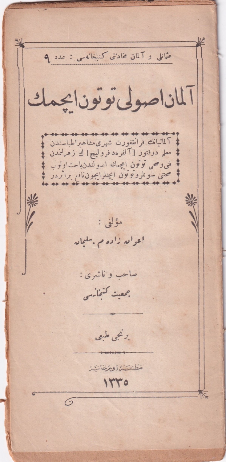 Osmanlıca Alman Usulü Tütün İçmek, Avanzade Süleyman, birinci baskı, Orhaniye Matbaası, 1335, 24 sayfa, 11x21 cm