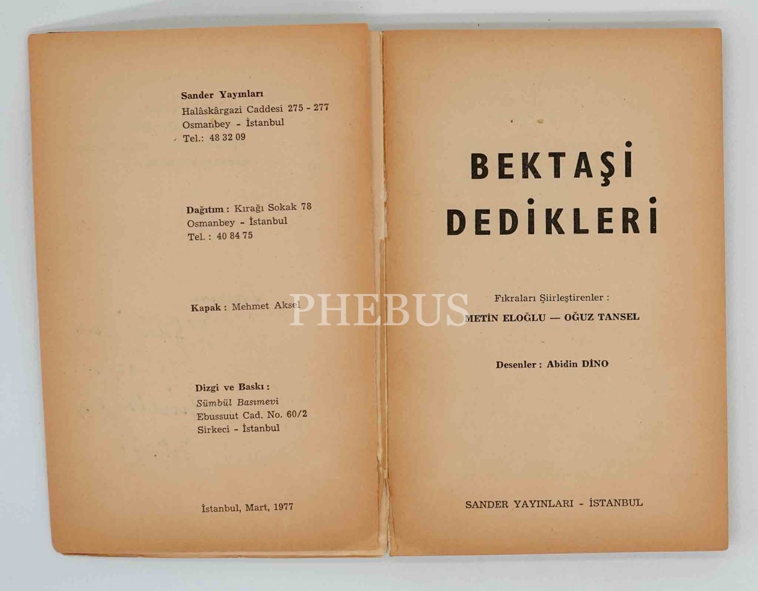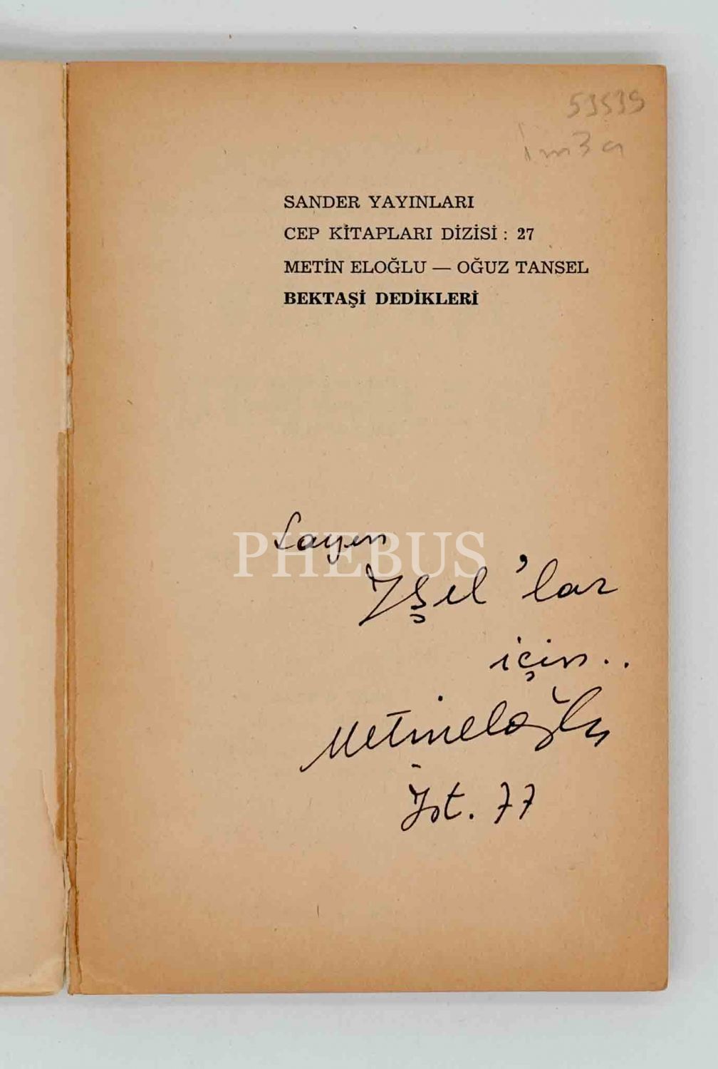 BEKTAŞİ DEDİKLERİ, Metin Eloğlu - Oğuz Tansel, Mart 1977 (İlk baskı), Sander Yayınları, 155 sayfa, 12x18 cm...