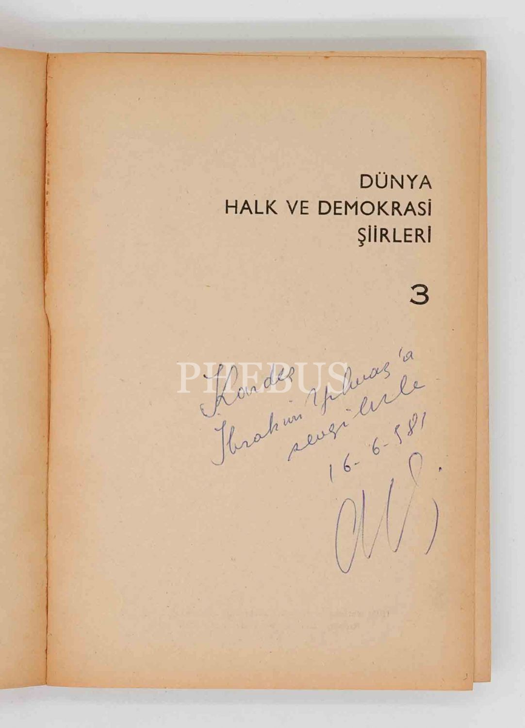 İthaf, "Kardeşi İbrahim Yılmaz´a sevgilerle. 16-6-981, A. Kadir" şeklindedir.