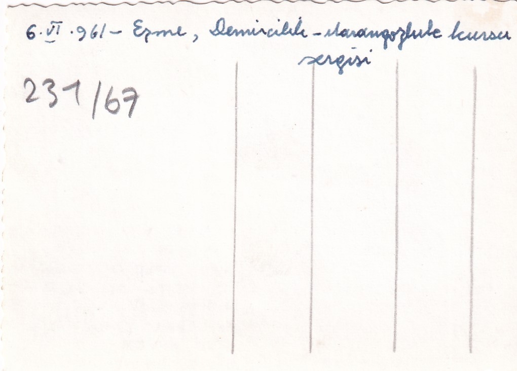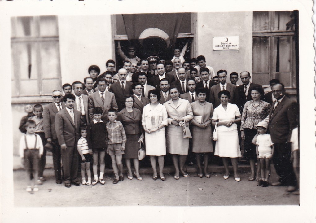 Türkiye Kızılay Cemiyeti şubesi önünde Demircilik ve Marangozlu kursu sergisine gelen davetliler 8x6 cm
