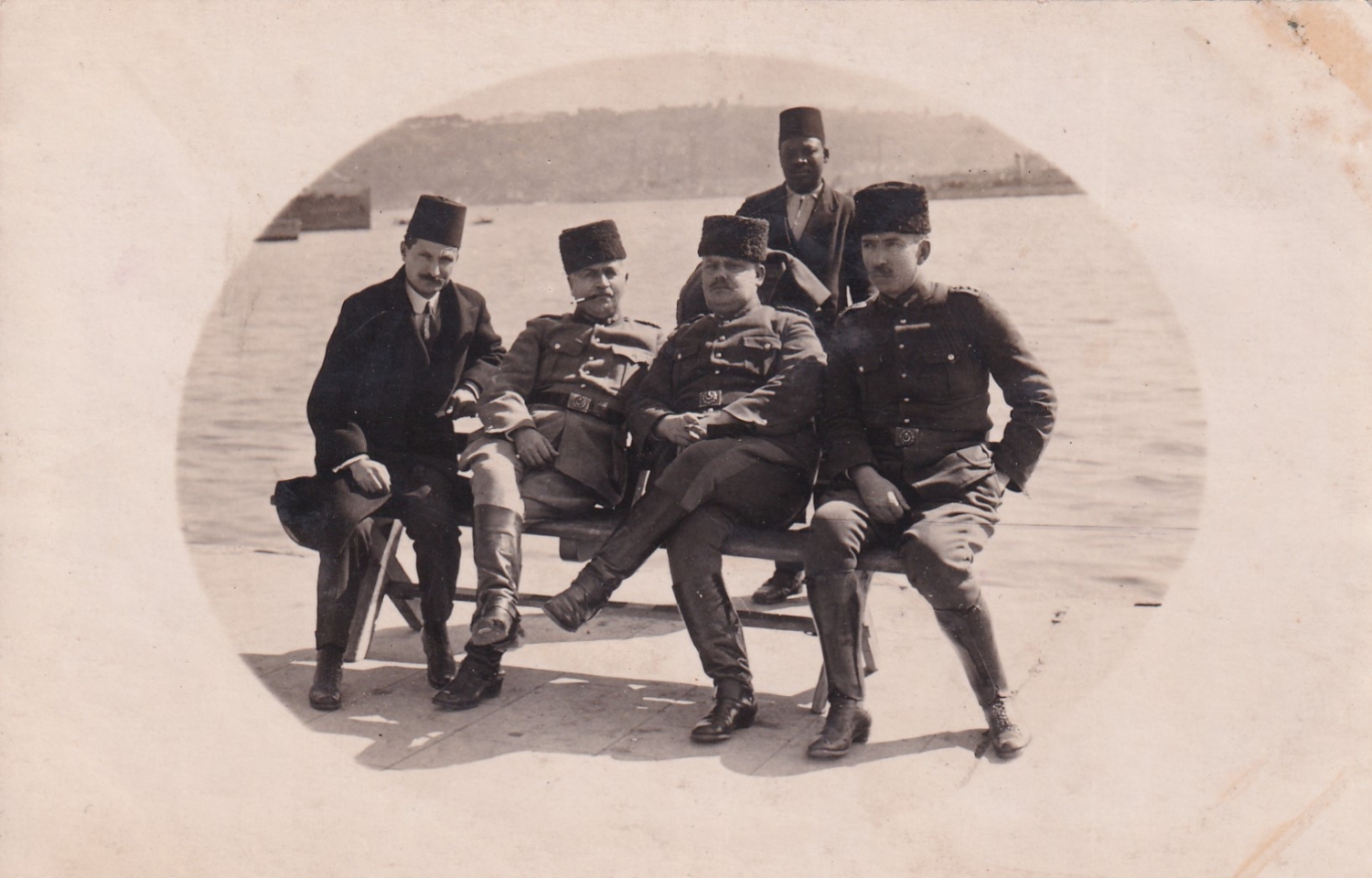 Kalpaklı Osmanlı subayları boğazda