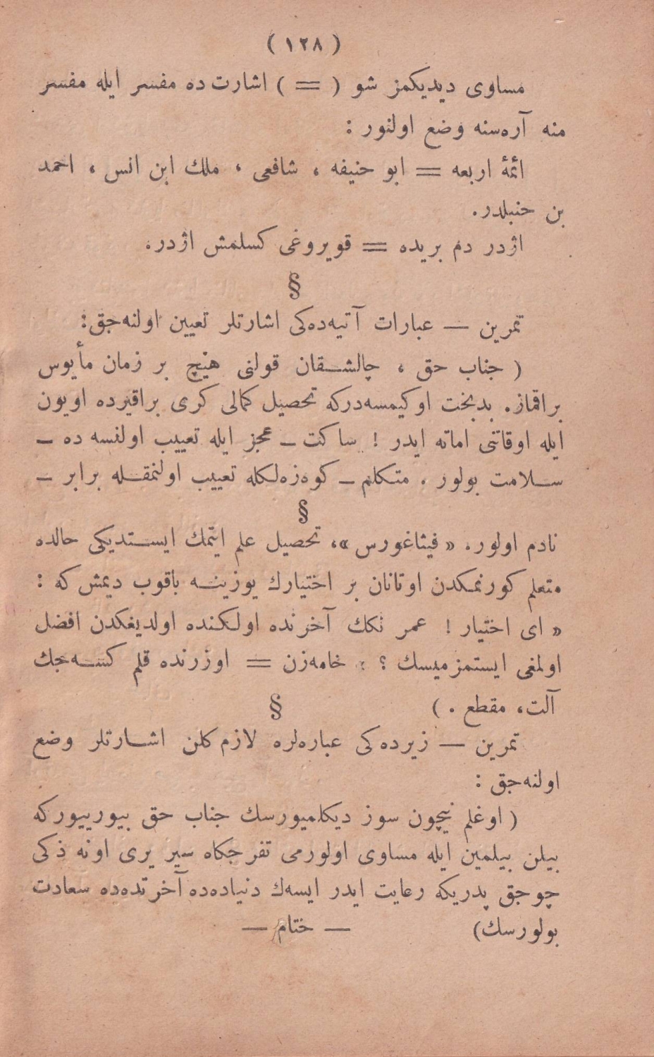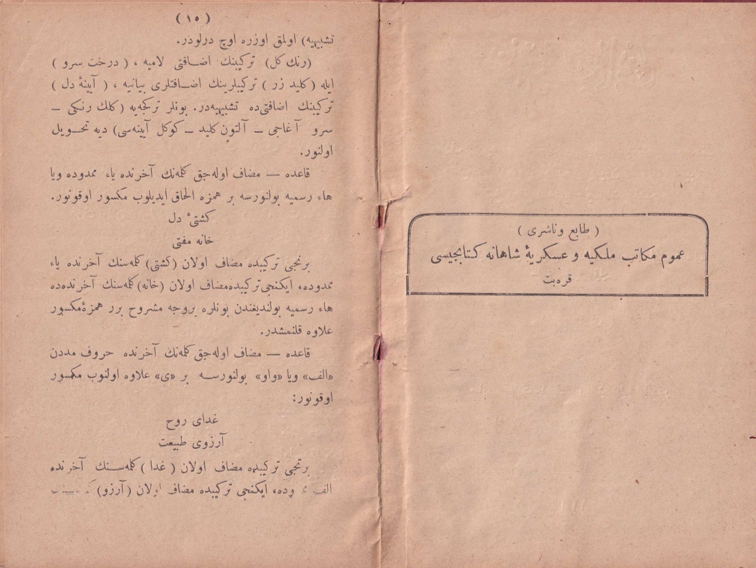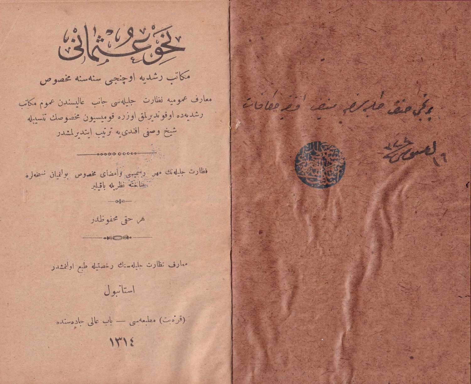 Osmanlıca Mükafat cildinde Şeyh Vasfi Efendi'nin Nahv-i Osmani eseri, Karabet Matbaası, 1314, İstanbul, ilk 9 sayfa eksik, 128 sayfa, 11x18 cm