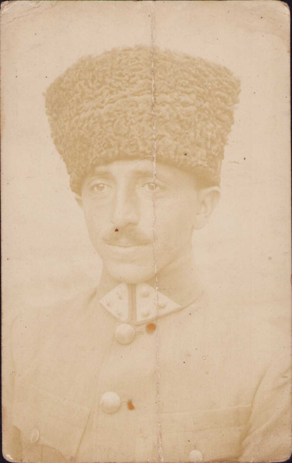 Kalpaklı Osmanlı subay portre, ortadan kırık
