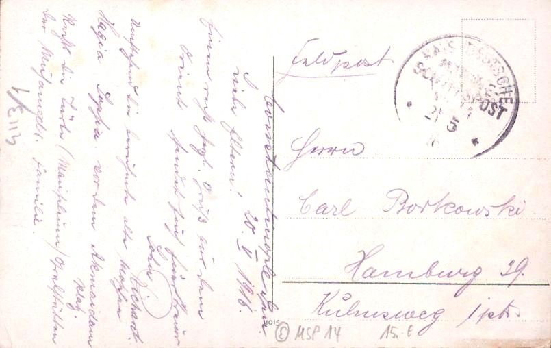 Arka yüzünde, 20 Mayıs 1916 tarihli Fransızca mektup yer almaktadır.