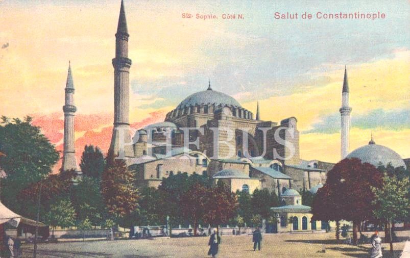 Ayasofya Cami, "Ste. Sophie. Cote N., Salut de Constantinople", postadan geçmiş, İstanbul, 14x9 cm...