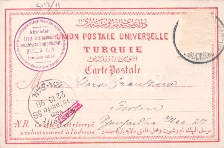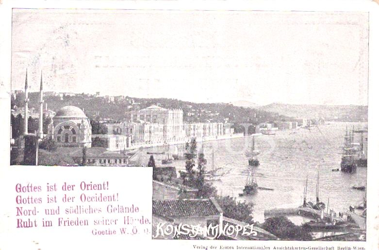 Büyük Mecidiye Cami, Dolmabahçe Sarayı ve Boğaz manzarası, "Konstantinopel", Alman Baskı, postadan geçmiş, İstanbul, 14x9 cm...