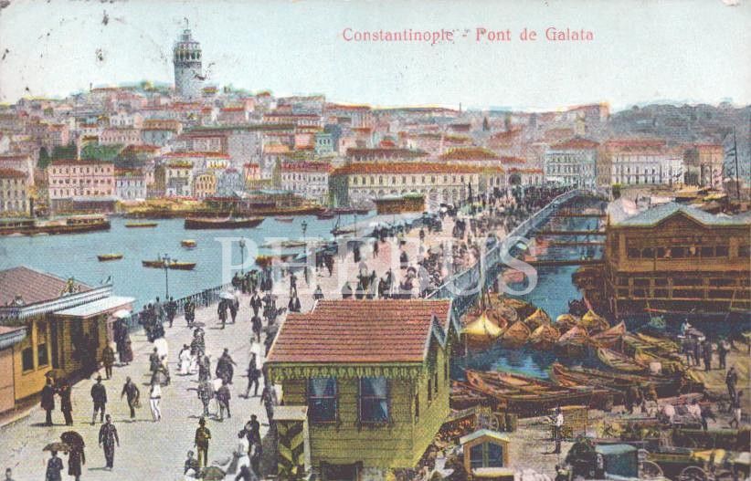 Galata Köprüsü ve Galata Kulesi, "Constantinople, Pont de Galata", postadan geçmiş, İstanbul, 14x9 cm...