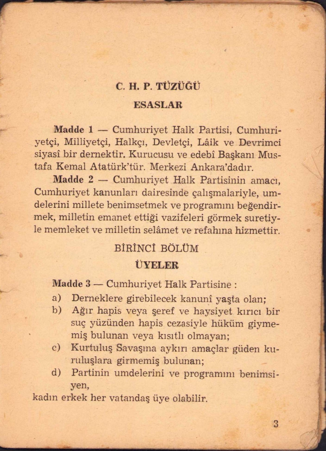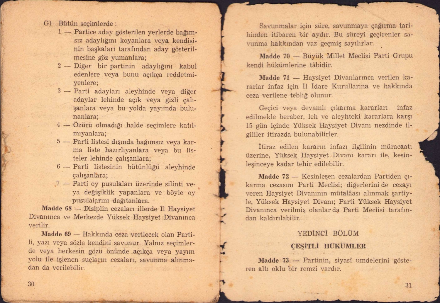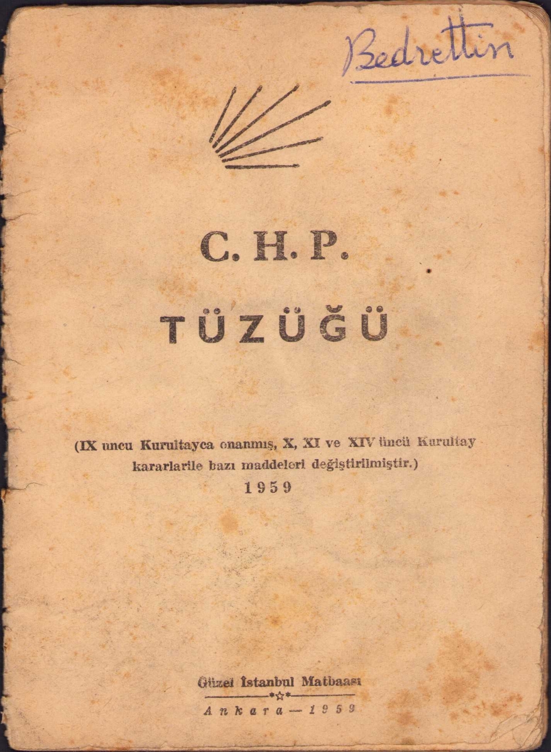 1959 CHP Tüzüğü, Ankara, 1959, 31 sayfa, 10x15 cm