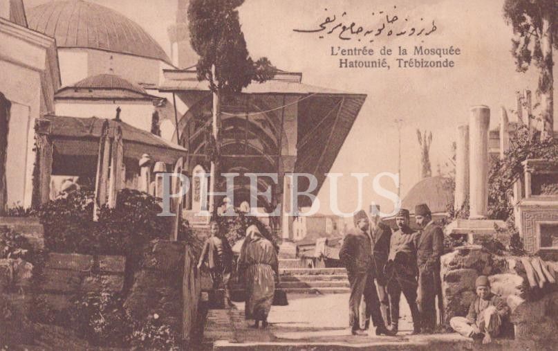 Trabzon Hatuniye Cami, "L´entrée de la Mosquée Hatounie, Treibzonde", Osmanlıca "Trabzon´da Hatuniye Cami Şerifi" yazılı, ed.: Kitabi Hamdi, Trebizonde, Trabzon, 14x9 cm...