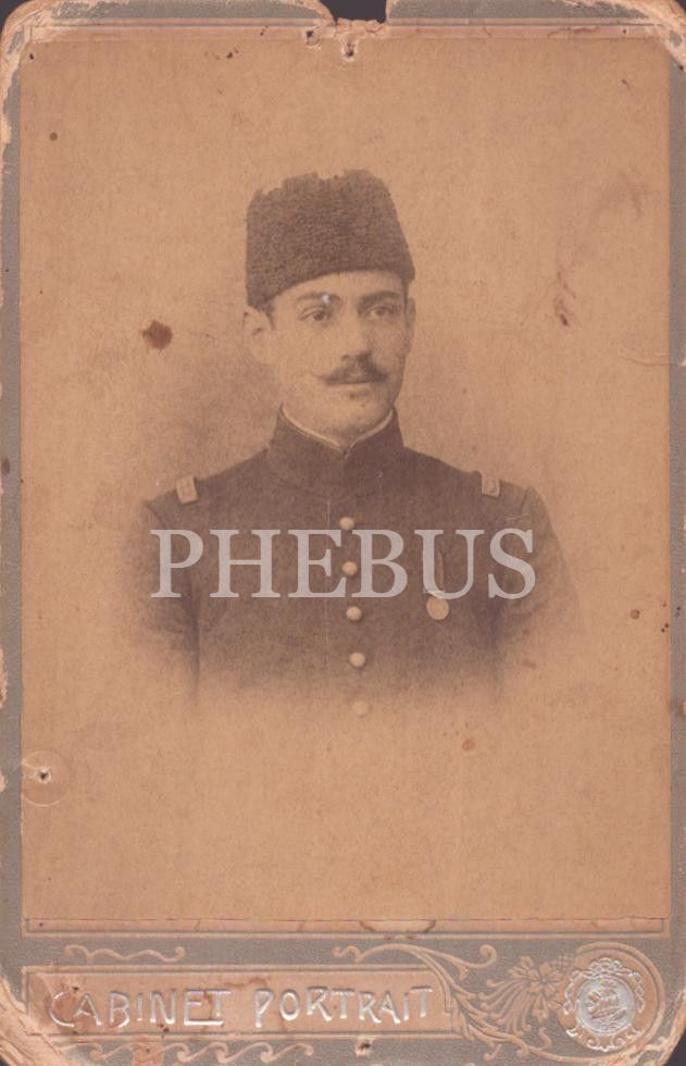 Madalyalı Osmanlı subayının stüdyo hatıra kabin fotoğrafı, 1321, 11x17 cm...