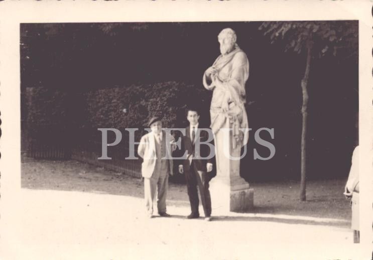 Sophocles heykeli önünde Profesör Fahrettin Kerim Gökay ve öğrencisinin hatıra fotoğrafı, 14x9 cm...