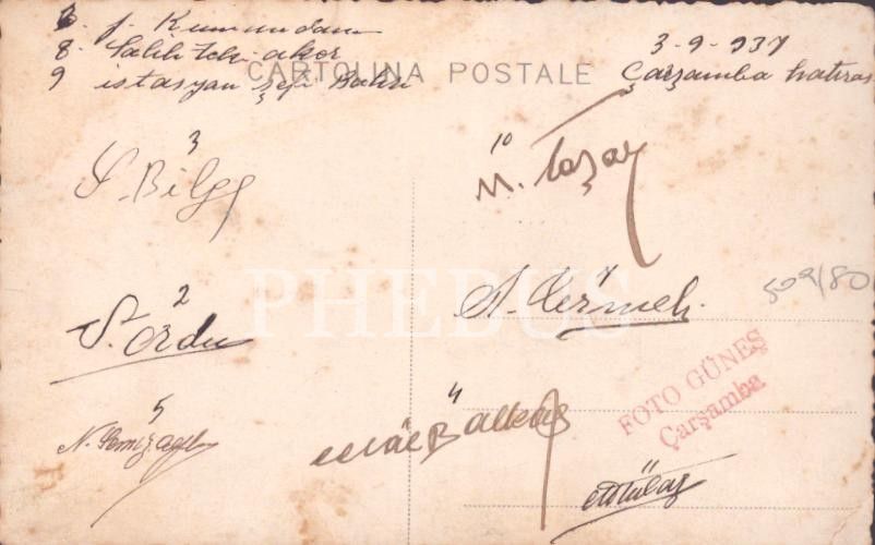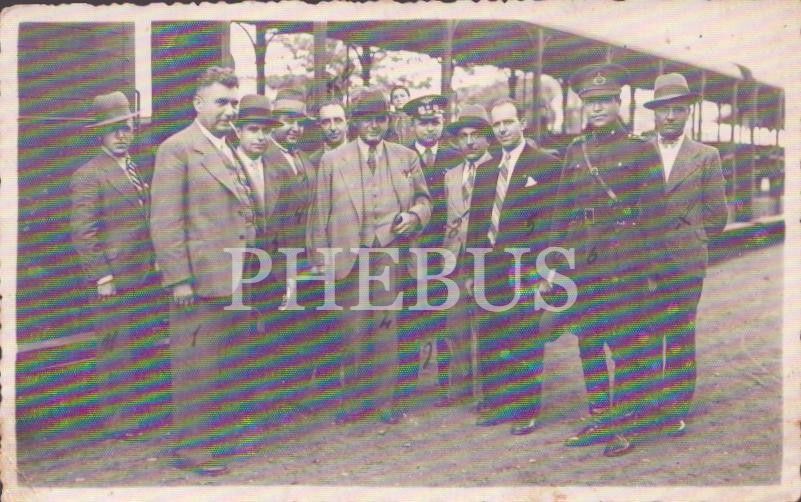 Samsun Çarşamba Tren İstasyonu´nda çekilmiş subay ve istasyon görevlilerinin ıslak imzalı hatıra fotoğrafı, Foto Güneş Çarşamba, 1937, 14x9 cm...