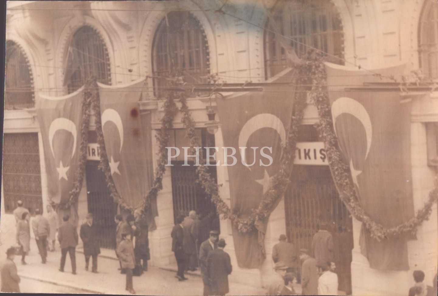 Türk Bayrakları ile süslenmiş tünelin Beyoğlu kapıları, 25x17 cm...