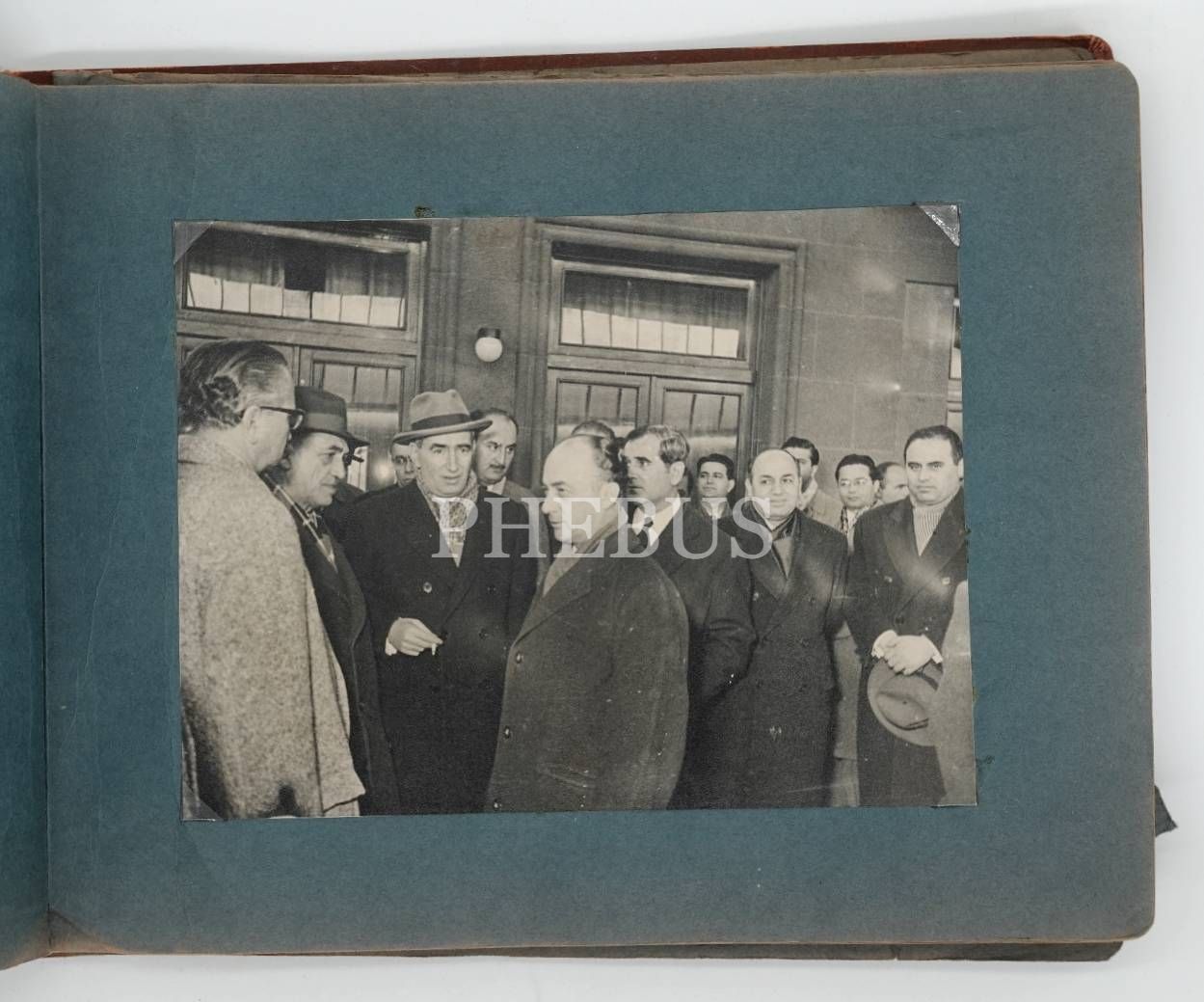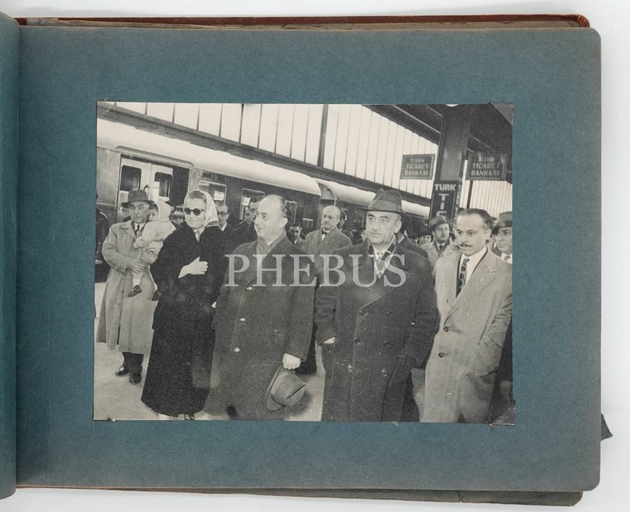 Türkiye Cumhuriyeti Çalışma Bakanı Hayrettin Erkmen´in, 11 Mart 1958 tarihinde gerçekleştirdiği tren seyahatinden hatıra fotoğrafları albümü, 36x25 cm...