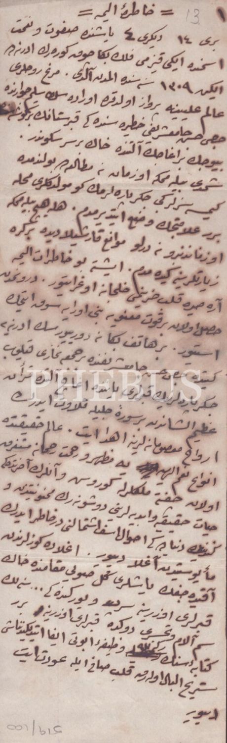 "Hatıra-ı Elime" başlıklı 14 ve 4 yaşında iki kızını kaybeden beyefedinin kaleme aldığı Osmanlıca hatıratı, 3 sayfa, 11x34 cm...