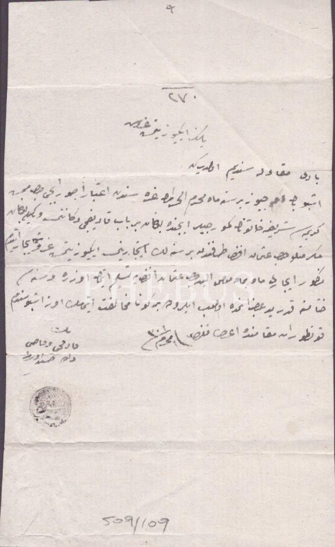 İstanbul Suriçinde bulunan kadife dükkanın 1 senelik Osmanlıca kira kontratı, 1 Muharrem 1301, 12x19 cm...