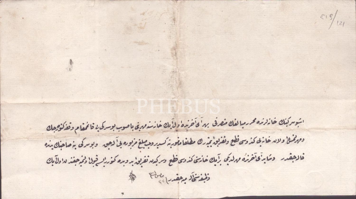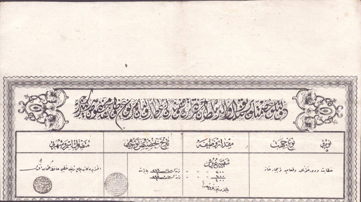 Pertevniyal Valide Sultan Hazretleri Vakfı memuru Hatıp Hafız Osman Efendi´ye verilen Osmanlıca vafize sirküleri, 1301, 29x16 cm...