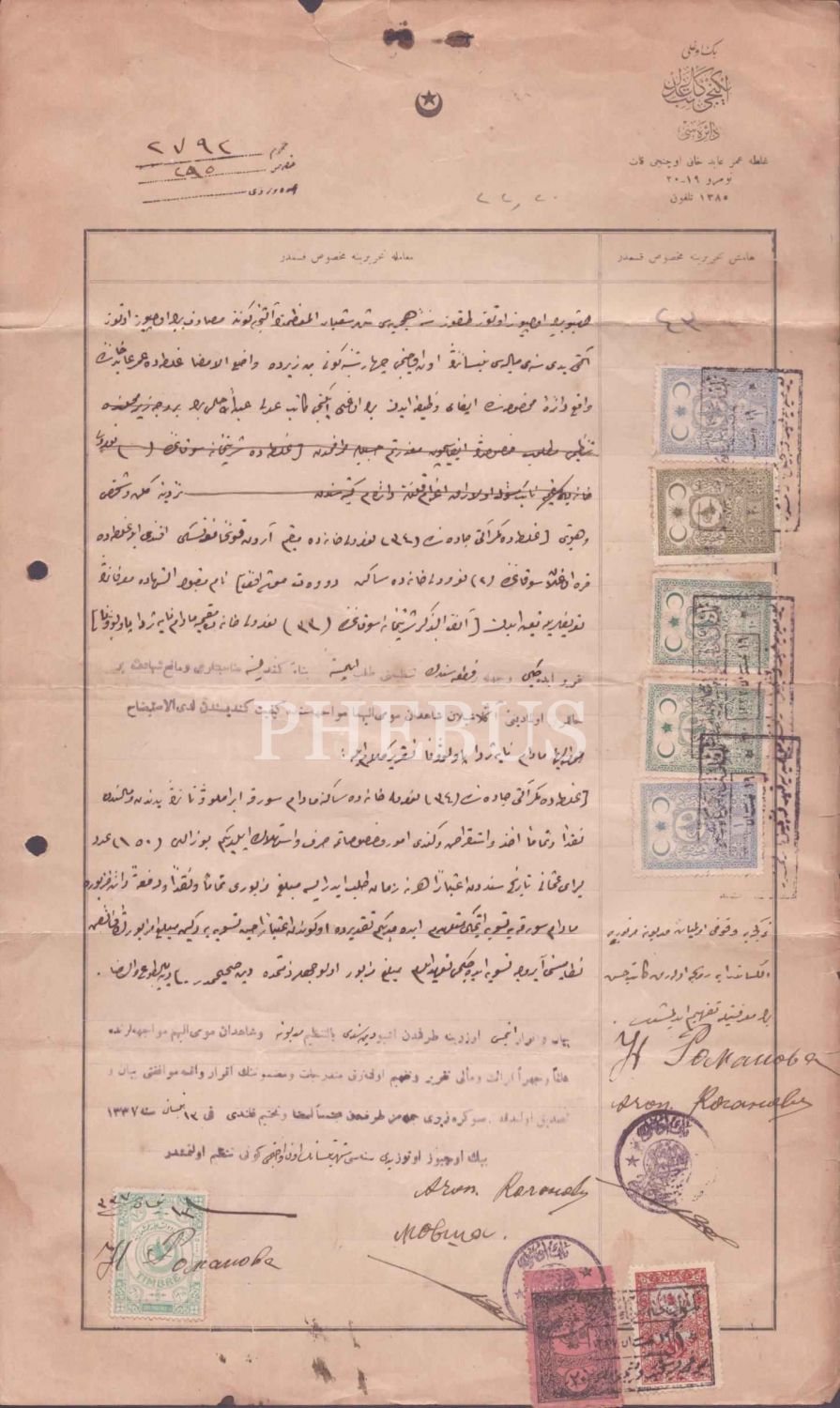 Beyoğlu İkinci Katib-i Adli Dairesi antetli Osmanlıca vekaletname, 1339, 41x25 cm...
