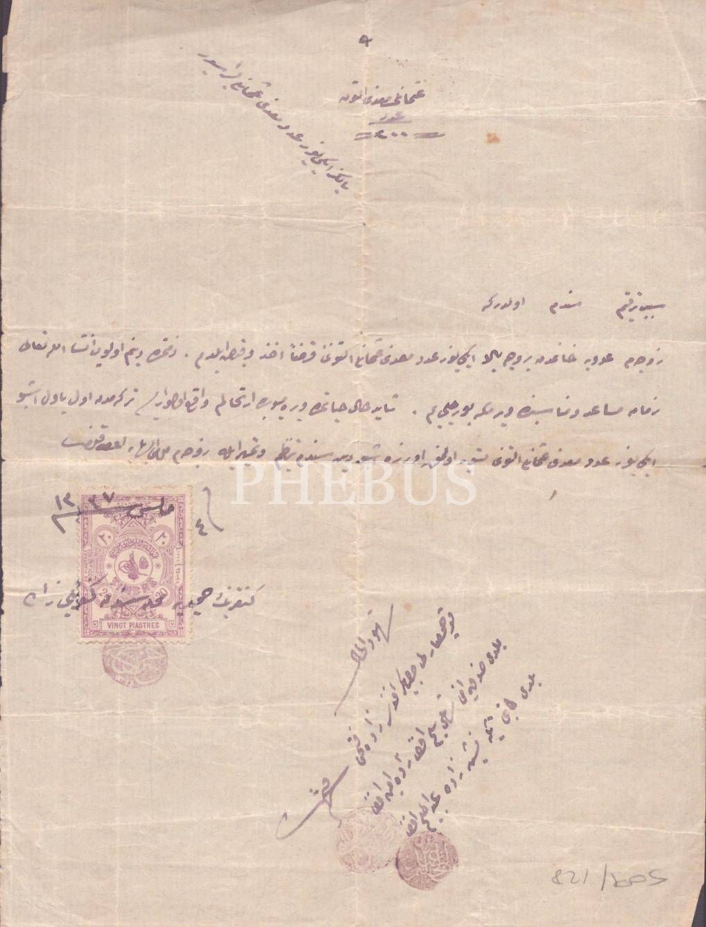 Koçhisarlı Cafer Efendi Zade Fettah´ın eşi Adviye Hanımefendi´den aldığı 300 Osmanlı madeni altının Osmanlıca borç senedi, 1337, 17x23 cm...