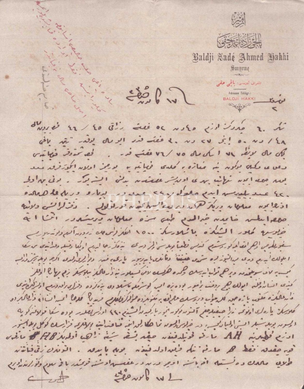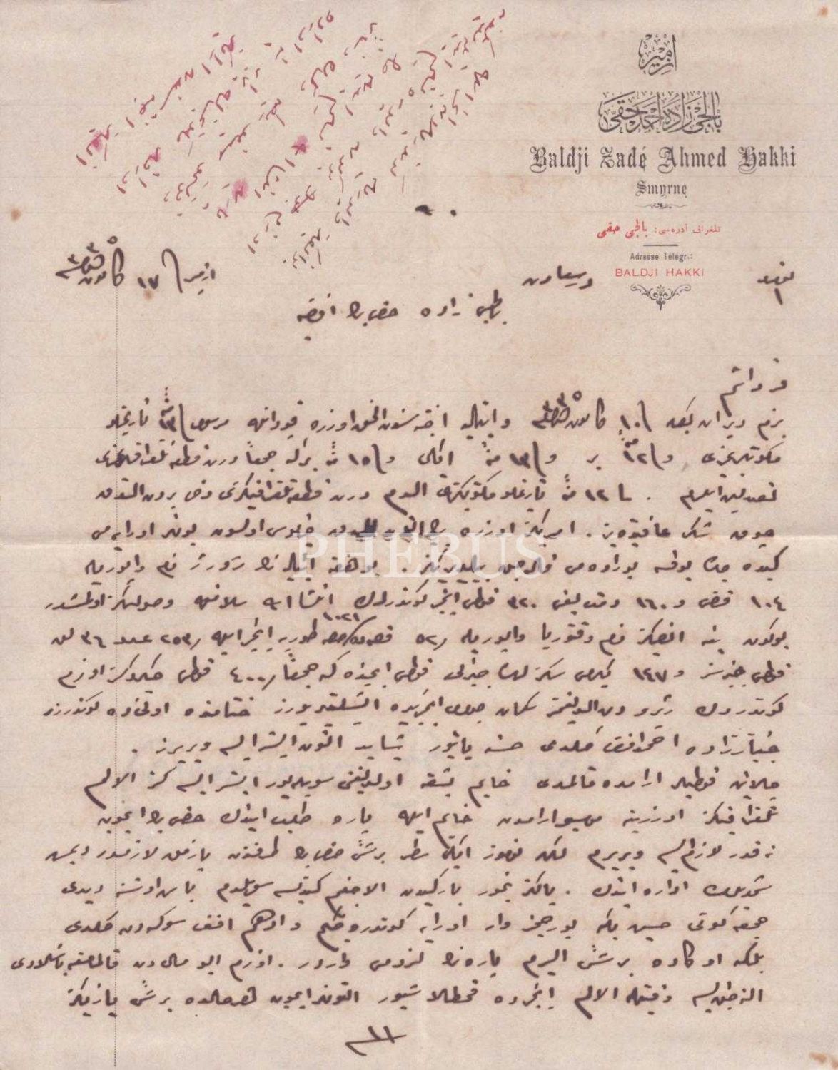 İzmir Balcı Zade Ahmed Hakkı antetli, 1335 tarihli 2 adet Osmanlıca mektup, 21x27 cm...