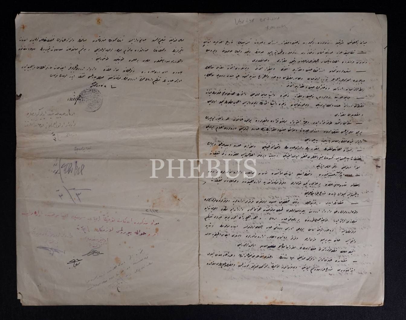 Rumeli Garp Ordusu Kumandanlığı İdare Heyeti antetli, Seferberlik ilanı ve masrafları ile alakalı Osmanlıca tutanak, 1328, 4 sayfa, 20x33 cm...