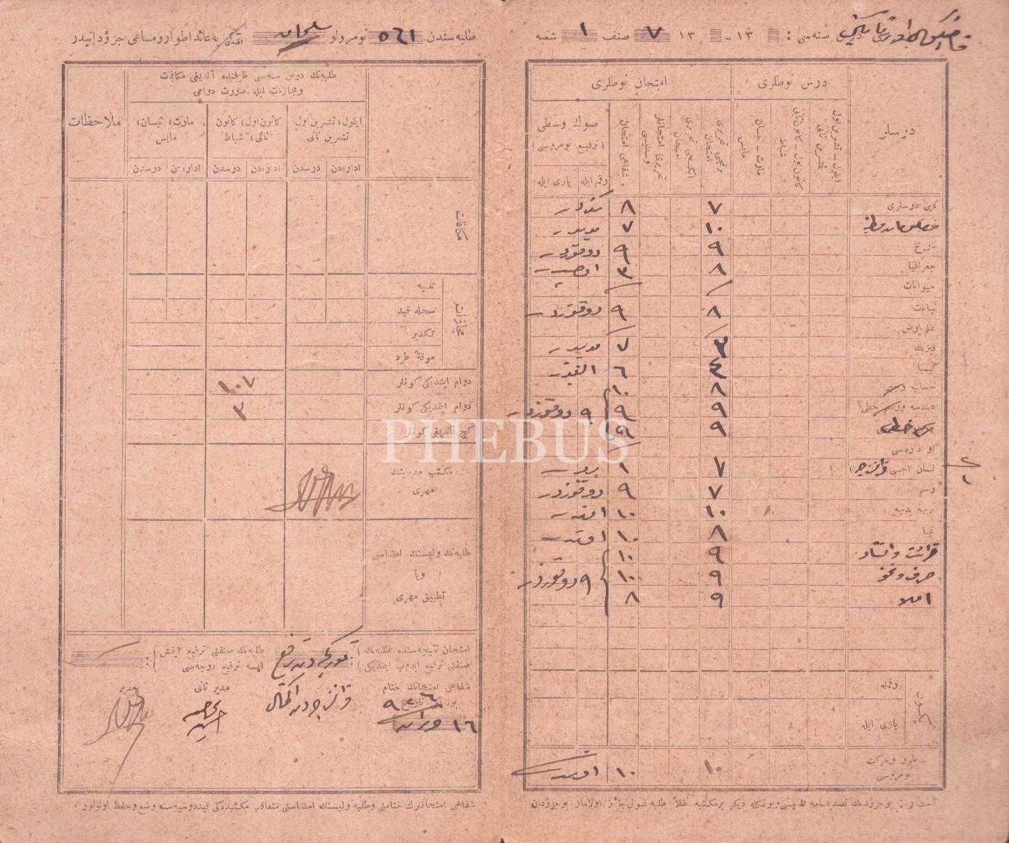 İstanbul Kadıköy Orta Mektebi tarafından Süleyman Efendi´ye verilen Osmanlıca karne, 1926, 25x21 cm...