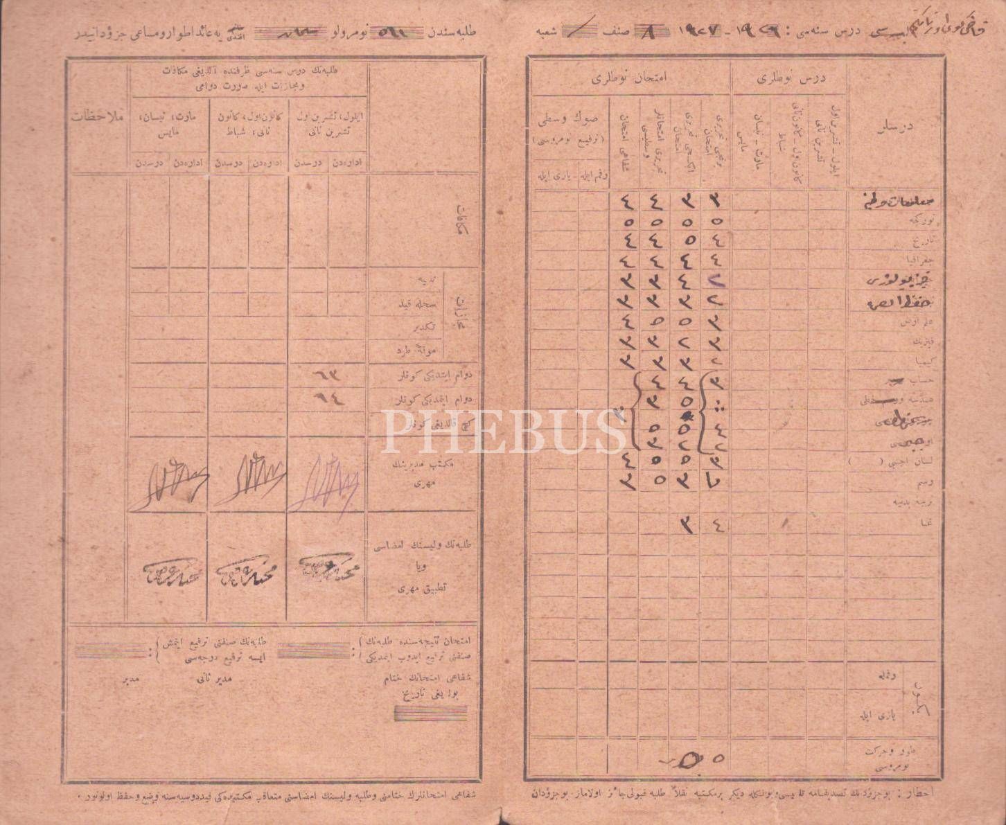 İstanbul Kadıköy Orta Mektebi tarafından Süleyman Efendi´ye verilen Osmanlıca karne, 1927, 25x21 cm...