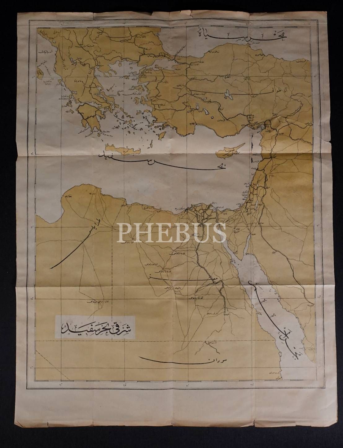 Balkanlar, Anadolu, Arap Yarımadası´nın ve Afrika´nın bir kısmını içeren Osmanlıca harita, 46x61 cm...