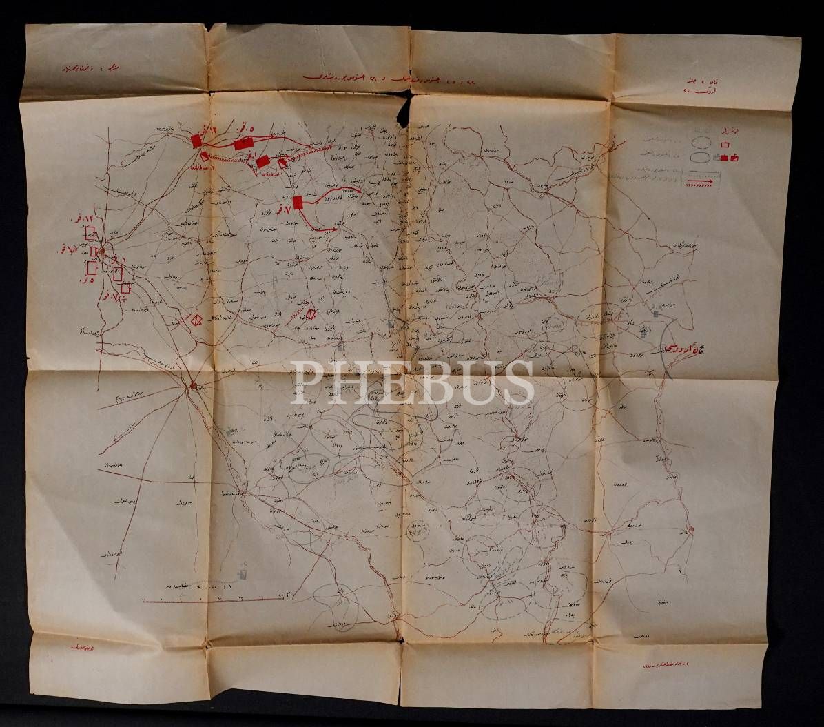 Fransız ve Almanlar arasında gerçekleşen muharebenin Osmanlıca askeri haritası, İstanbul Matbaa-i Askeriye 1341, 57x63 cm...