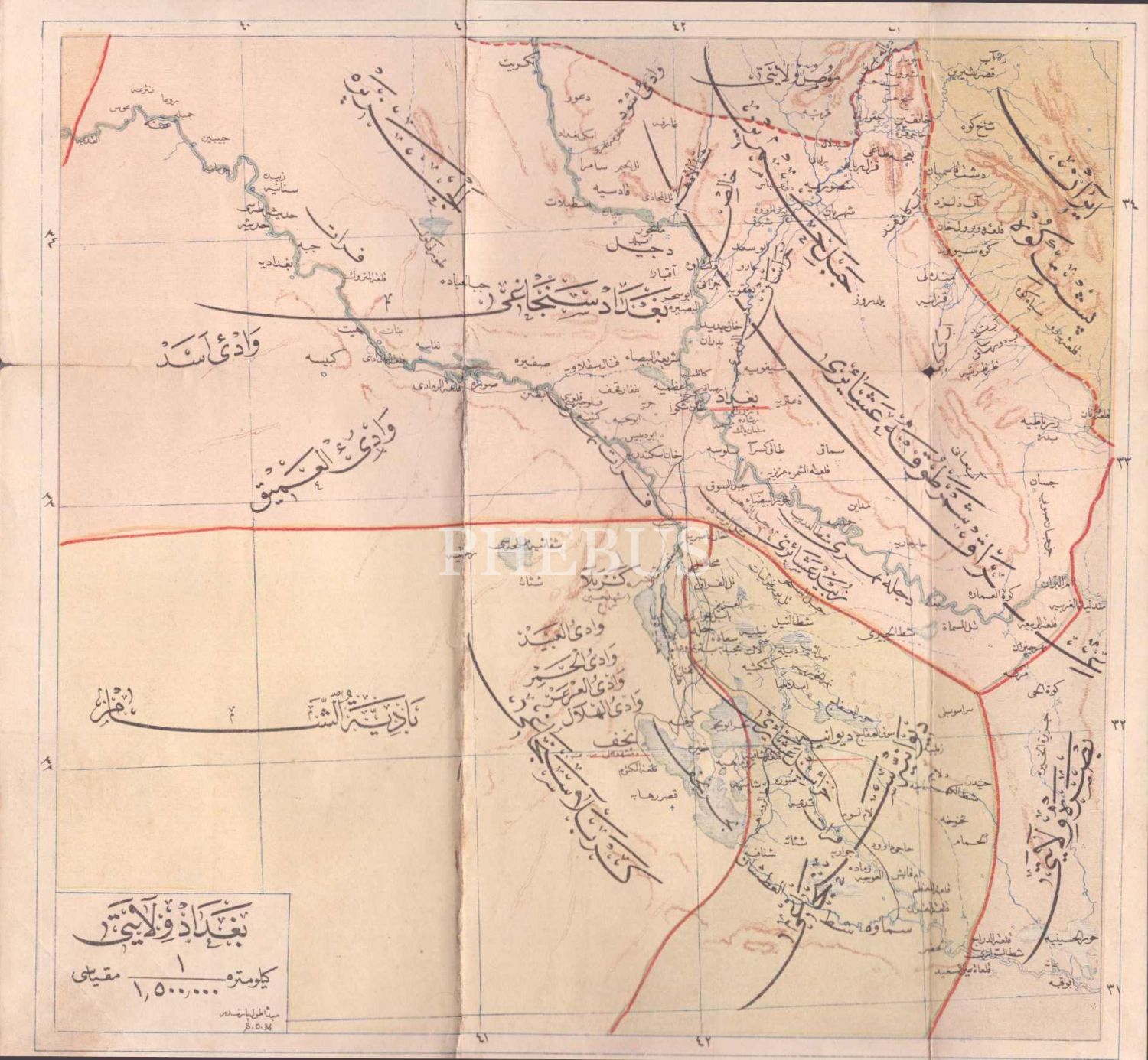 Bağdat Vilayeti Osmanlıca Harita, 32x31 cm...