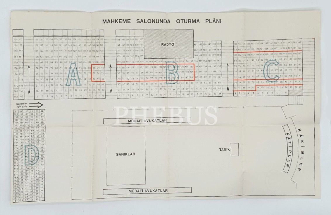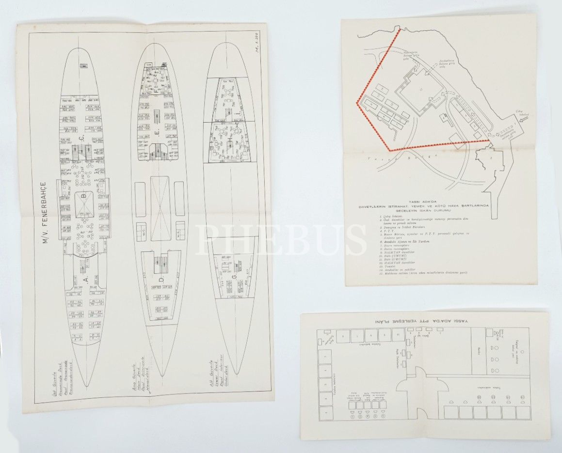 27 Mayıs 1960 darbesinden sonra Demokrat Parti yönetiminin yargılandığı Yassıada Yargılamaları´na ait Ekim 1960´da yayınlanmış YASSIADA BROŞÜRÜ, Ayrıca M/V Fenerbahçe ve M/V Dolmabahçe gemilerinde oturma planı, Yassıada Ptt yerleşkesi, Mahkeme Salonu´nda oturma planı ve kötü hava şartlarında iskan durumunun planı mevcuttur.